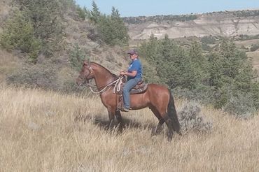 We offer a treasurechest of the widely respected, old historical bloodlines & classical type represented within our Morgan stallions. They are all representative of our goal to produce & promote versatile Morgans, with willing dispositions, by carrying into the future - pieces of the past. *Featured is our late sr. stallion, Quantum Midnight Magic, riding the Achenbach Trail in the North Unit of Theodore Roosevelt Nat'l Park.